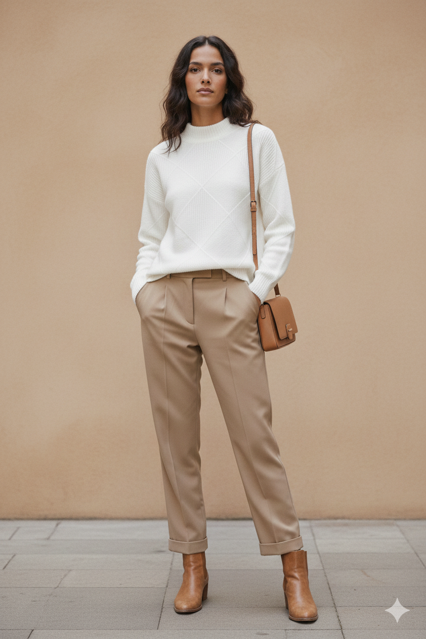Ein sanfter, neutraler Farbton, kombiniert mit einer feinen Strickstruktur, die Komfort und Stil harmonisch verbindet. Ein unverzichtbares Basic für jeden Tag.